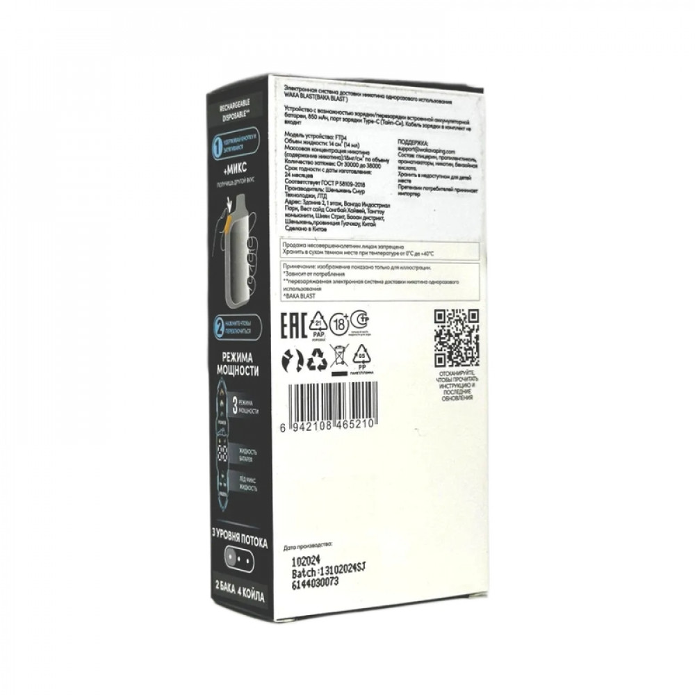 Технические характеристики WAKA BLAST 38000 Hard - Вишня + лед микс